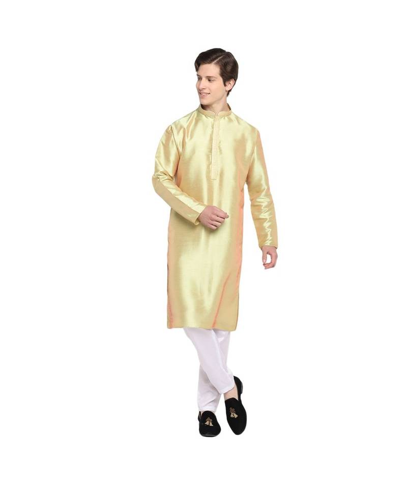 • Product Id : 3818022 • Package Details : 1 Kurta • Type : Kurta • Work : Embroidered • Sleeve : Full Sleeve • Neck Style : Round Neck • Top Color : Gold • Top Fabric : Silk • Stitching : Stitched Payments [+]